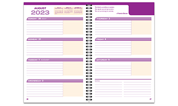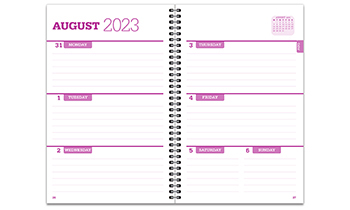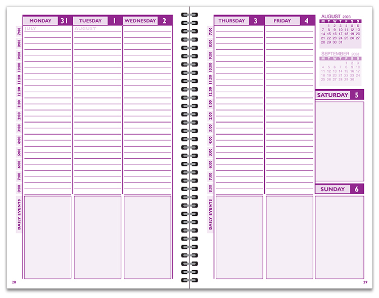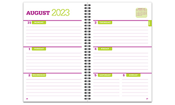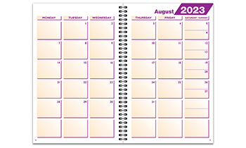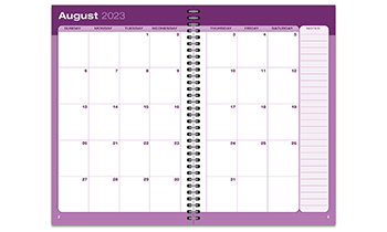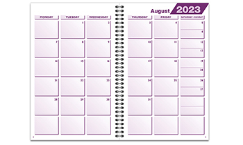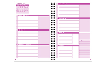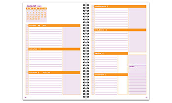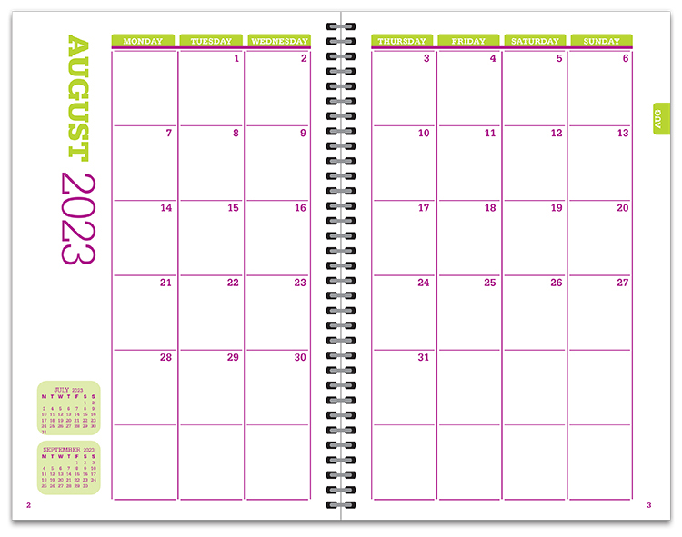 Our Collegiate planner includes 13 months – 2 page weekly and monthly spread from July to July, plus 13 monthly divider tabs and a bookmark ruler.
