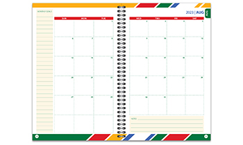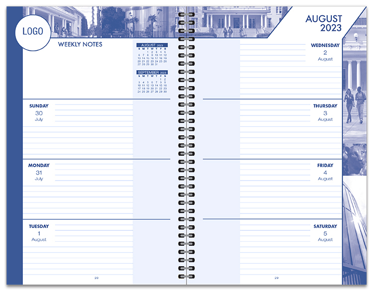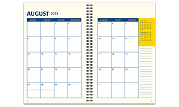 Calendar pages help to build confidence. Students can write down their assignments, plus easily reference important dates and events throughout the school year. Global Datebooks can incorporate campus events, academic calendars, and holidays throughout your student planner calendar pages to keep your students organized and aware.