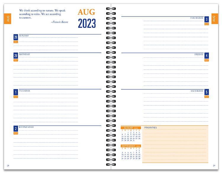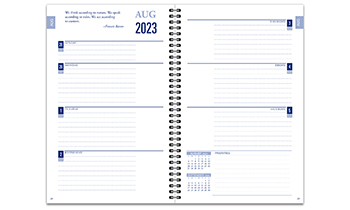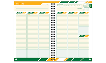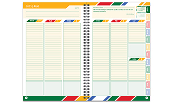 Our Die-Cut Tabs provide a quick way to navigate your handbook and calendar section.